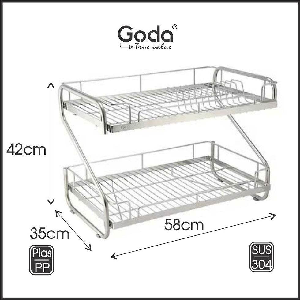 Prota Kệ inox 304 úp chén dĩa 2 tầng chữ S có khay hứng nước GD-115A
